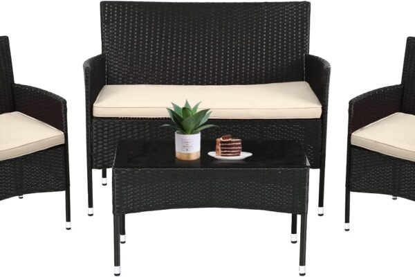 4 Piece Outdoor Wicker Patio Set – Sofa, 2 Chairs and table About this item