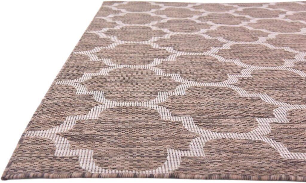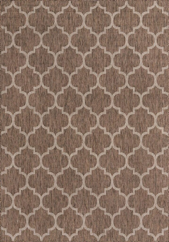 Outdoor Area Rug (7′ 1″ x 10′ Rectangle, Brown/ Ivory)